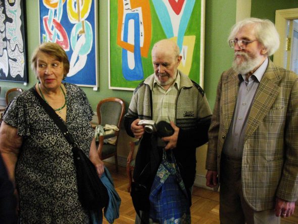 Т.Столярова, А.Строчилин, В.Булдаков, выставка Э.Белютина, ИН-т Икусствознания, 2015 г